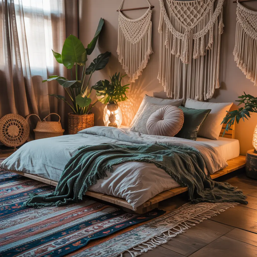 Don’t forget the plants! Bohemian style loves greenery, so hanging planters, trailing pothos, and that massive monstera you’ve been eyeing all work perfectly here.