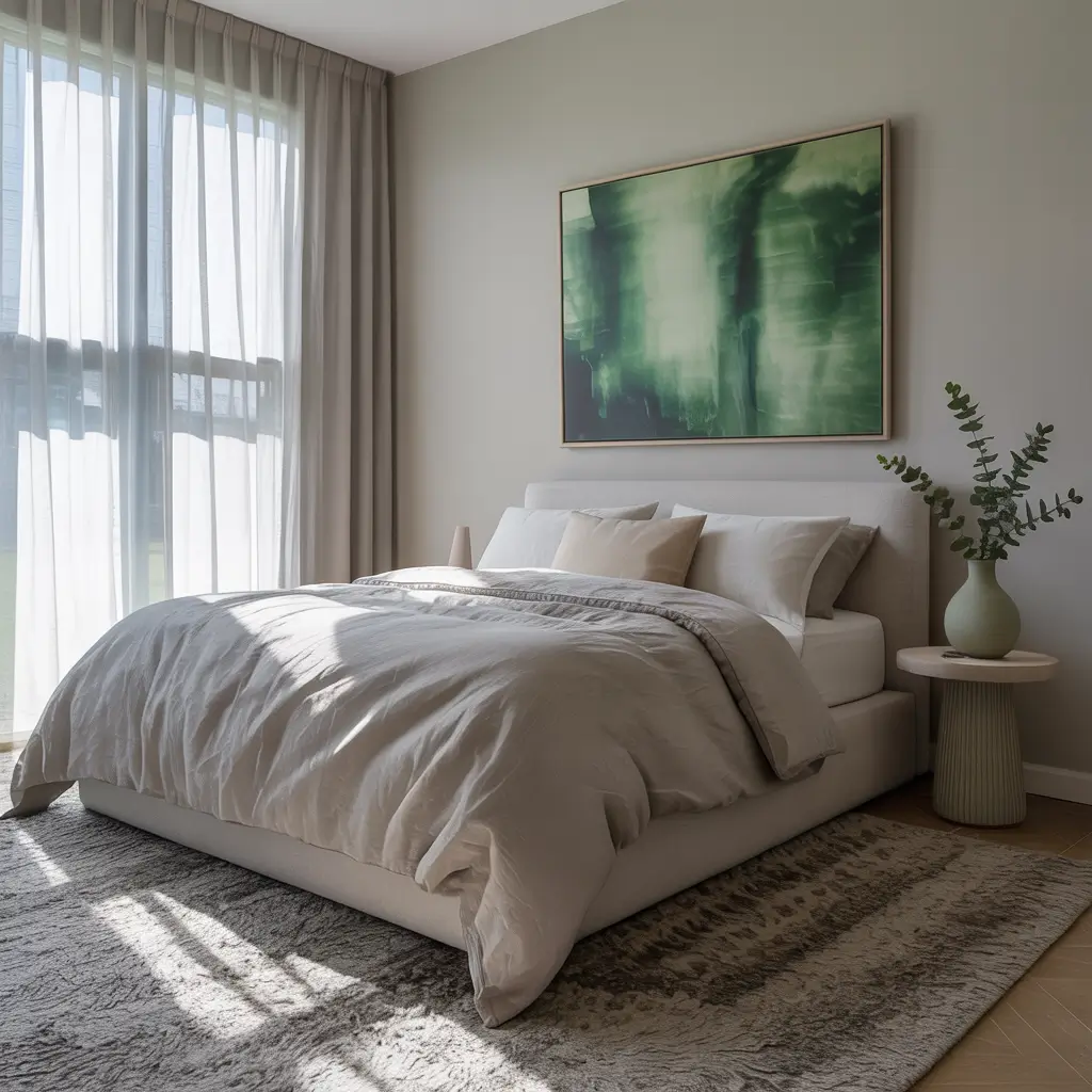 Small bedroom? No problem. Paint just one accent wall in sage and keep the rest light grey. This prevents that closed-in feeling while still giving you that nature-inspired vibe.