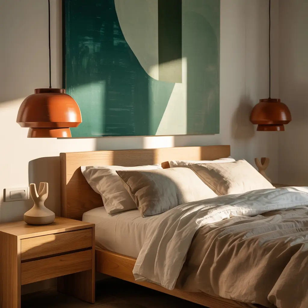 This combo works particularly well in minimalist bedrooms where you want warmth without clutter. The colors do all the heavy lifting while keeping the overall look clean.
