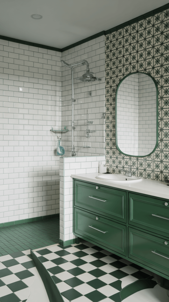 5. Green and White Tile Bathroom Inspiration: Patterns & Playfulness