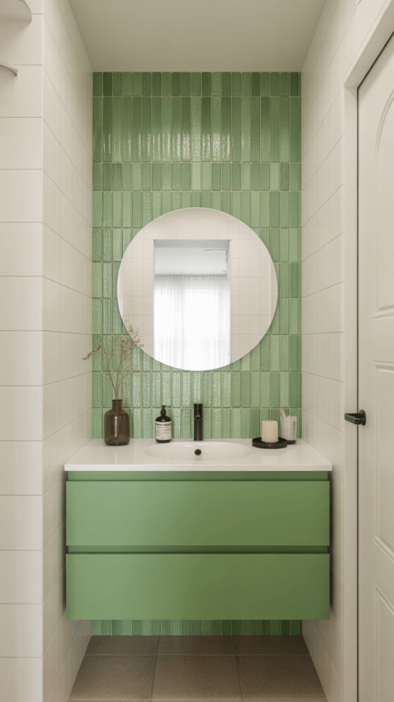 Pro Tip: Don’t be afraid of a high-gloss green tile for a modern twist. It reflects light beautifully and adds a touch of unexpected glamour.