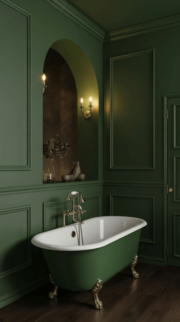 - Balance is Everything: Pair this intense color with plenty of crisp white on fixtures, tiles, and trim to keep it from feeling like a cave. Metallic accents in gold or brass are a must—they add a touch of glamour and warmth that plays perfectly with the green.