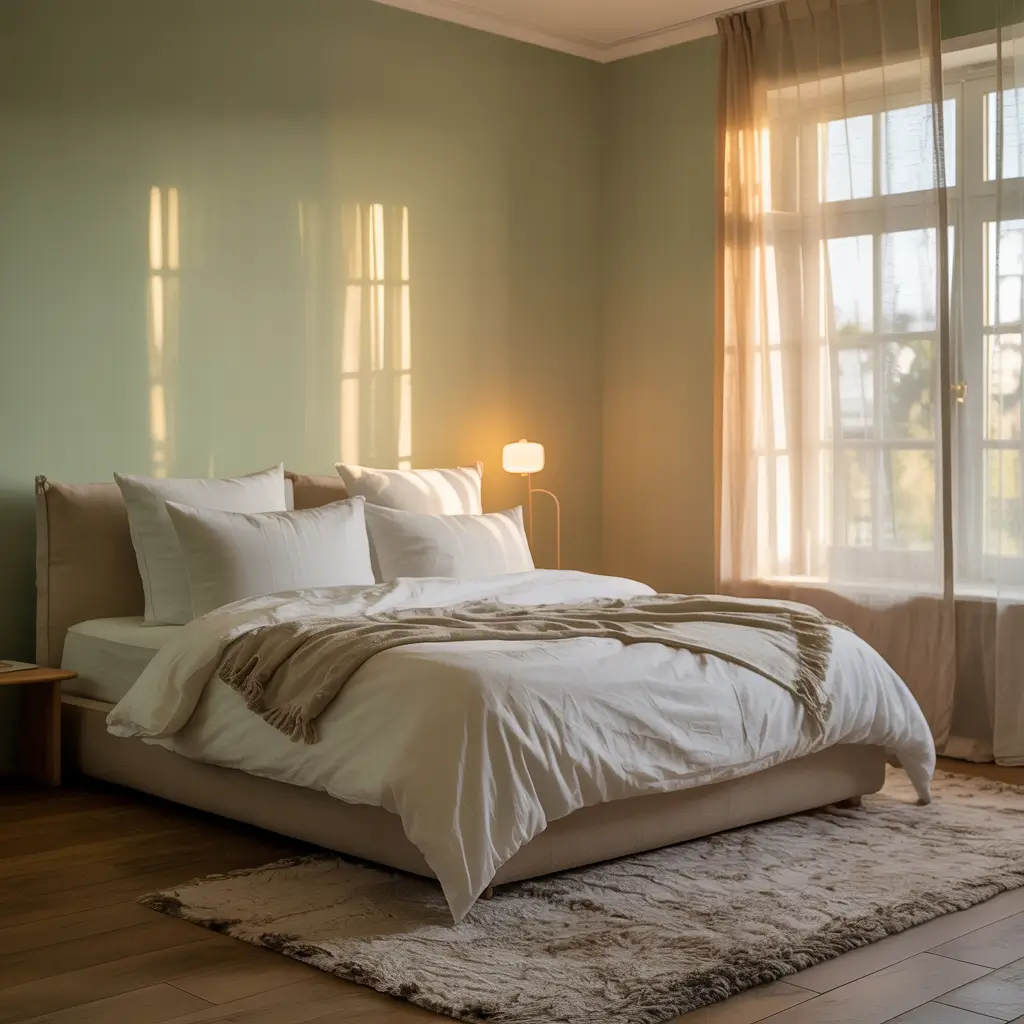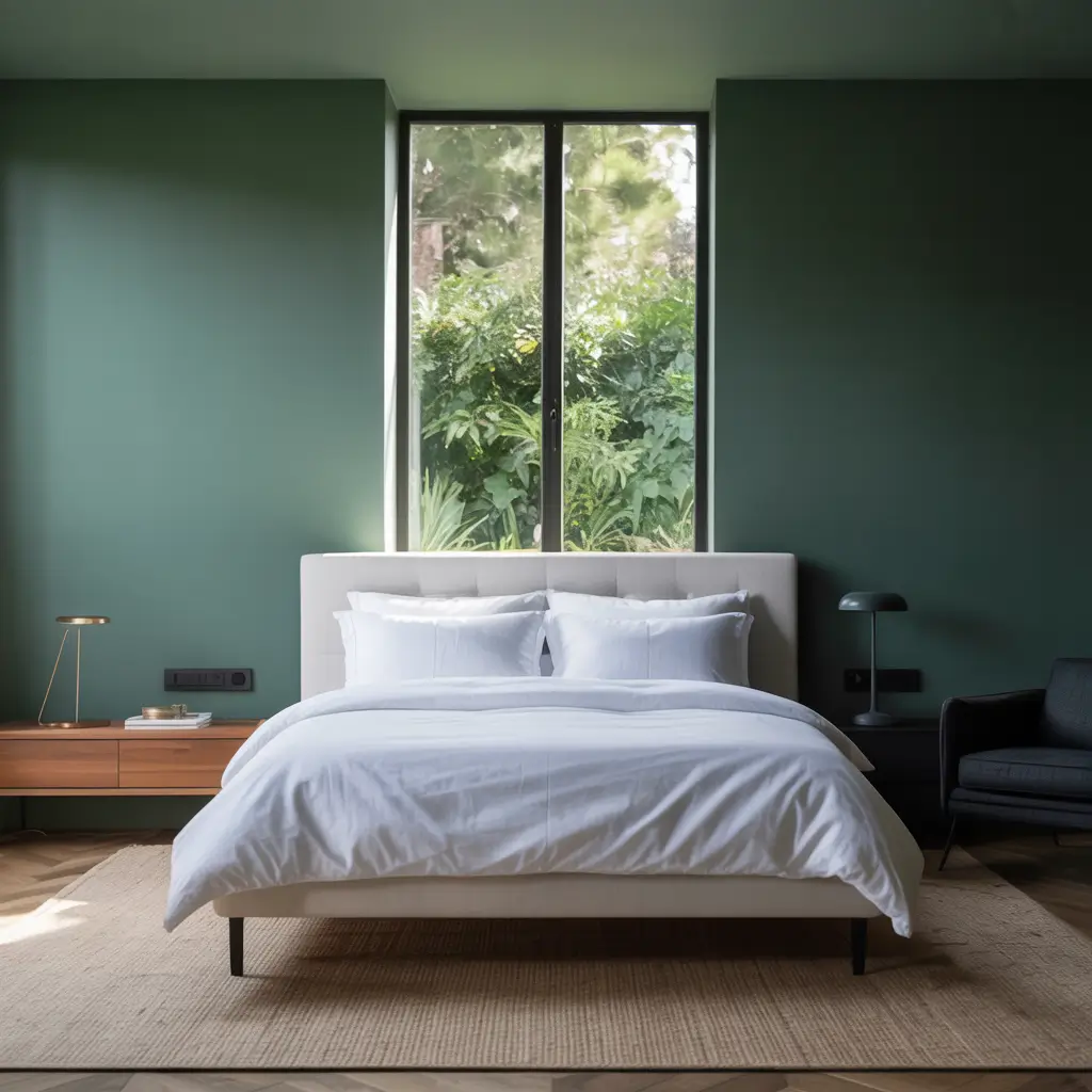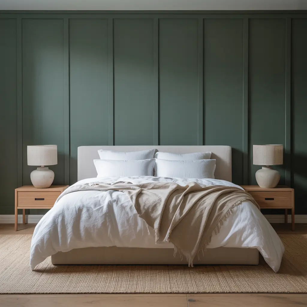 Want to know the secret sauce? Keep everything else super simple. White sheets, maybe a cream throw blanket, and let that green wall do all the heavy lifting. Trust me, less really is more with this look.