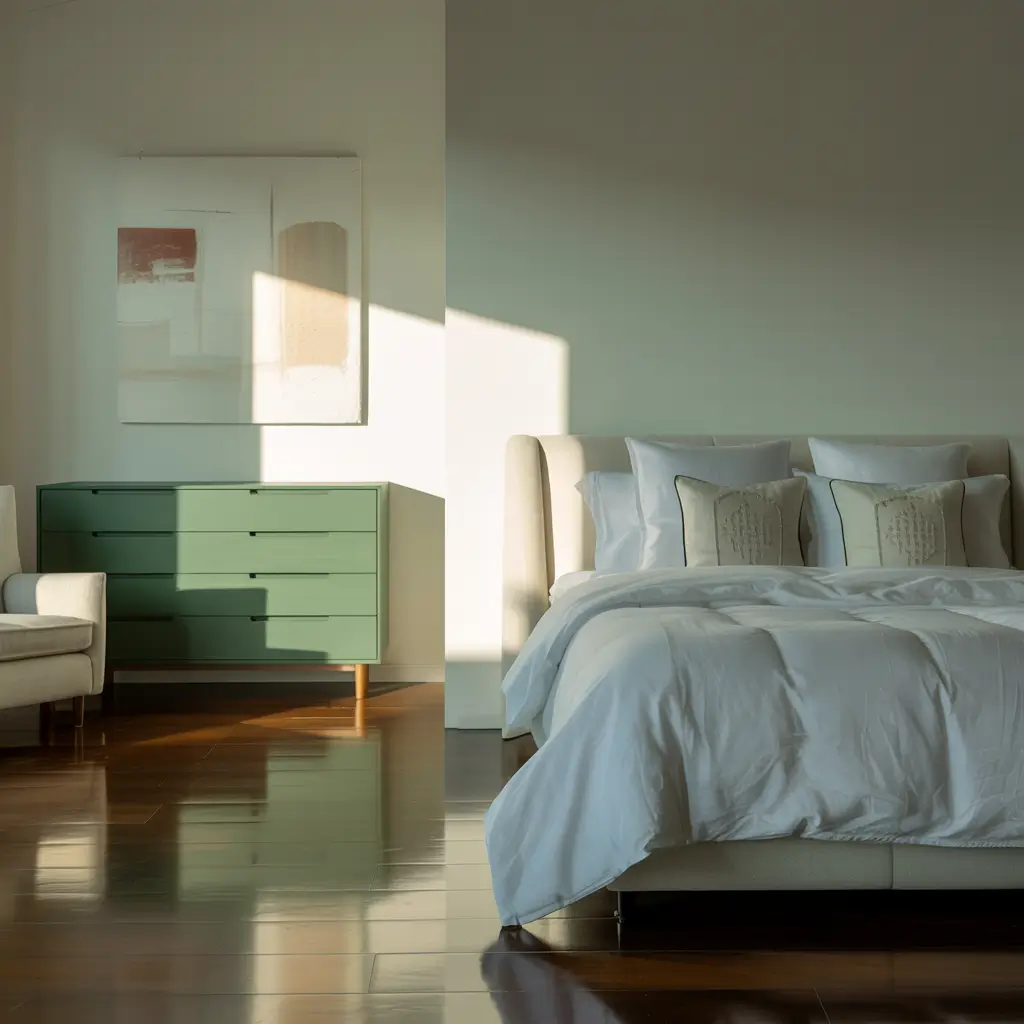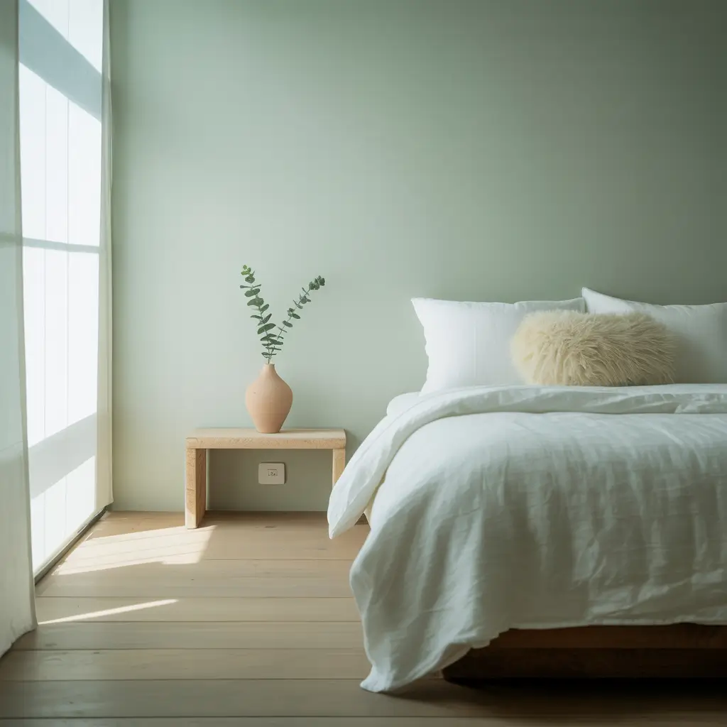 Now, if forest green feels too intense for you, let’s talk about mint green minimalism. This combination whispers instead of shouts, and sometimes that’s exactly what you need in a bedroom.