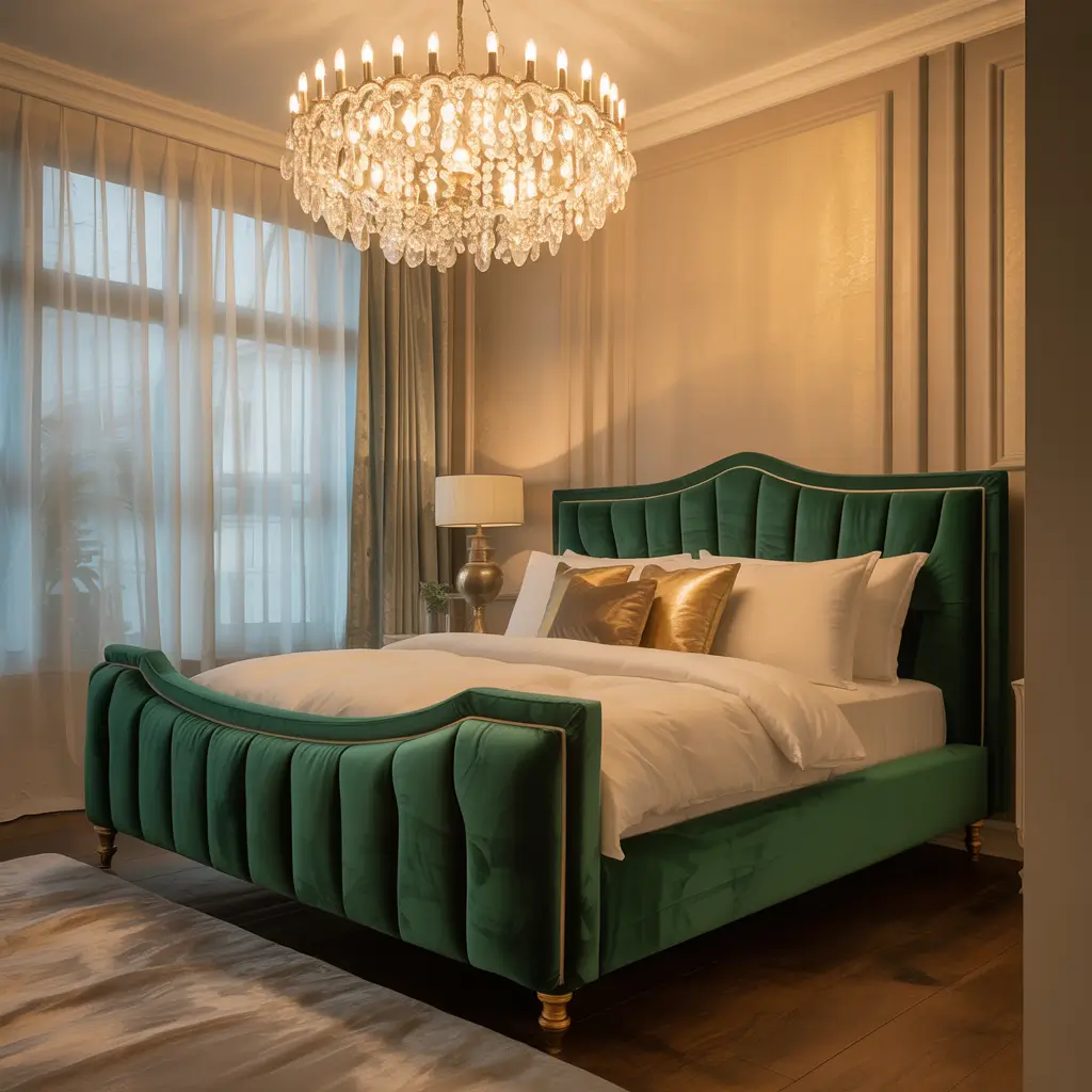 Can we just take a moment to appreciate the absolute luxury of an emerald green velvet bed frame? This combo makes me feel like royalty every single morning, and who doesn’t want that?
