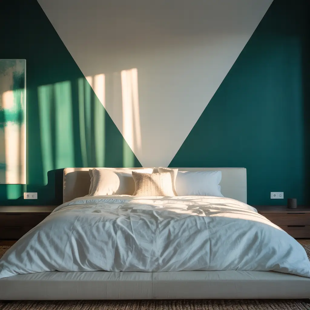 Two-Tone Green and White Geometric Walls
