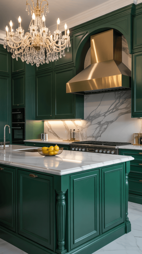 Want a kitchen that feels like a five-star hotel? Luxury is all about the details, the quality of materials, and a sense of grandeur. Green is a fantastic color for this—it’s inherently rich and opulent.