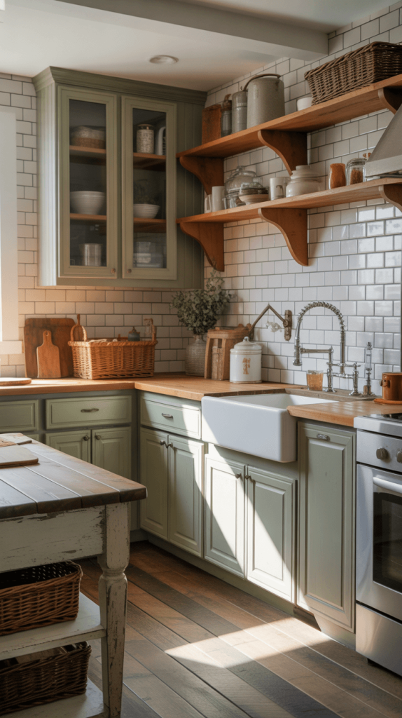 4. Rustic Green and White Farmhouse Kitchen