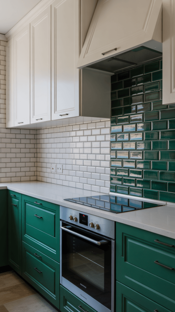 • Green Backsplash: Flip the script! A green tile backsplash against white cabinets is a stunning, more subtle look. It ties the whole color scheme together beautifully.