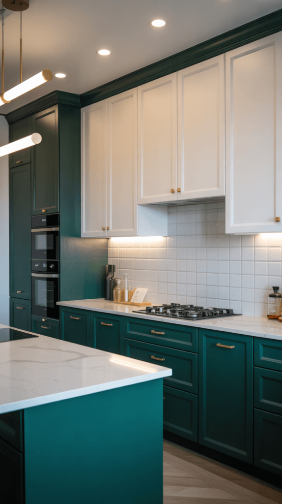 1. Emerald Green and White Modern Kitchen