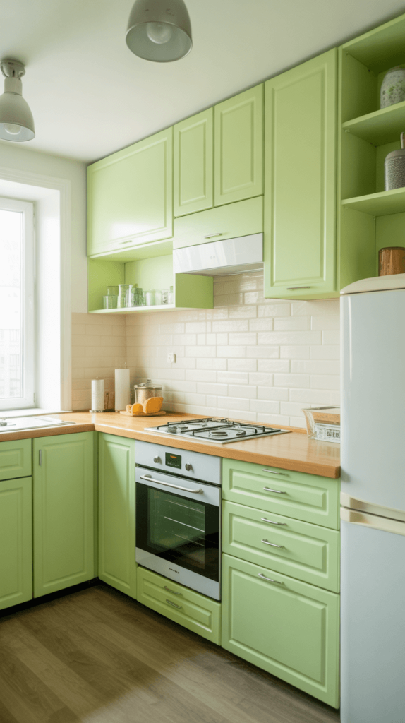 12. Bright Green and White Kitchen for Small Spaces