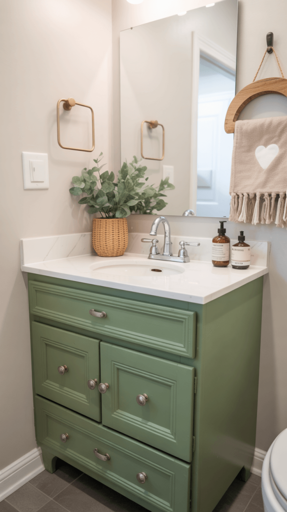 Not ready to drop thousands on a new vanity? I feel you. The DIY painted vanity is a legendary budget-friendly move for a reason. It’s transformative, personal, and deeply satisfying. And green is a phenomenal color choice for this project.