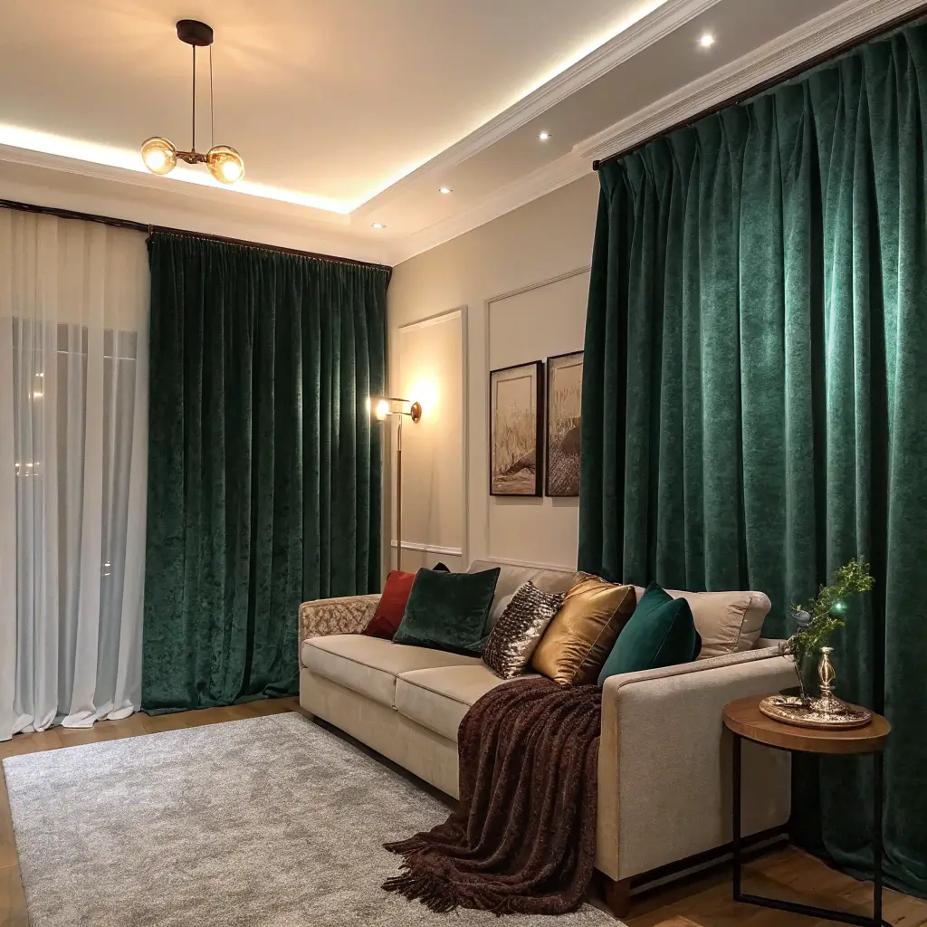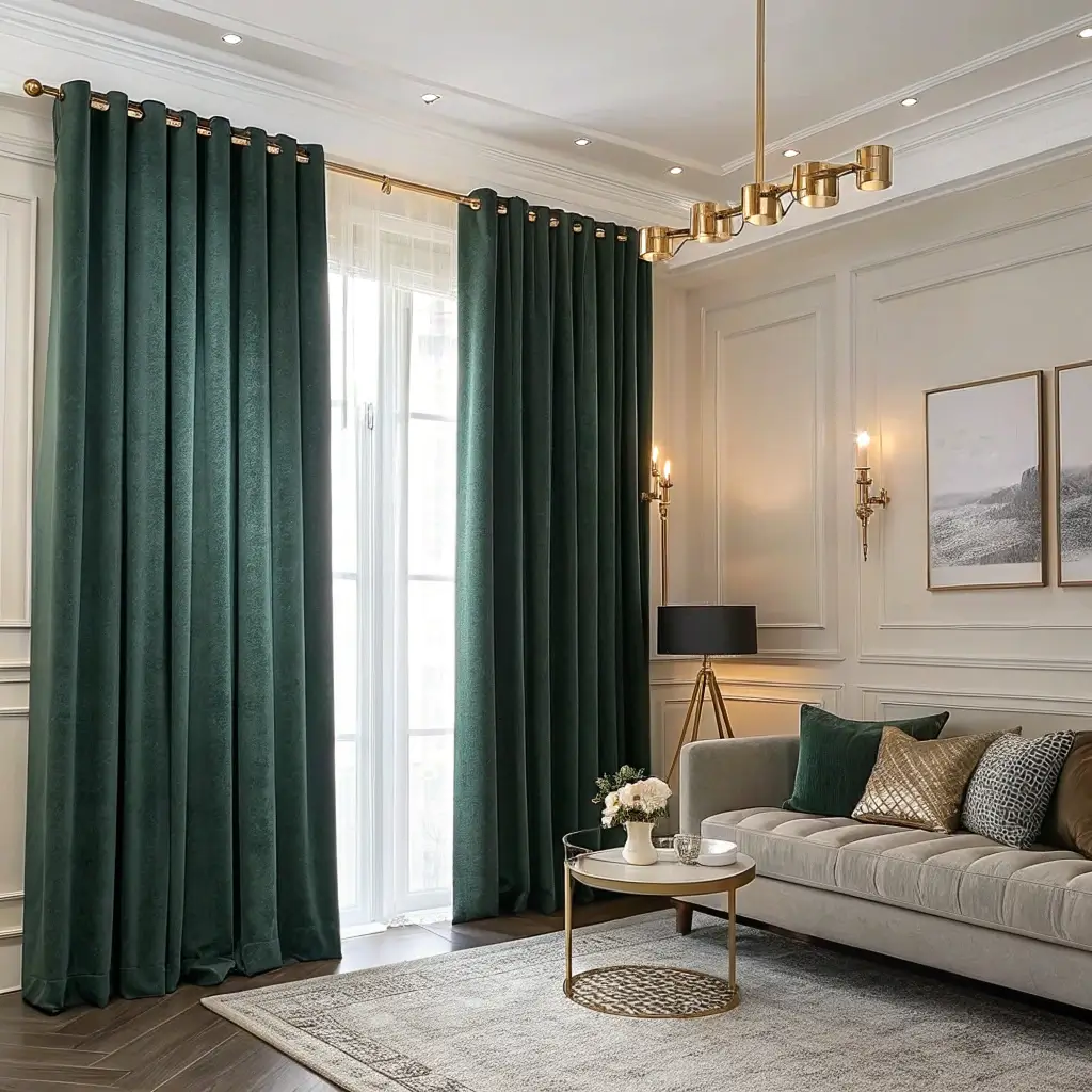 Deep Green Velvet Curtains for Cozy Living Rooms