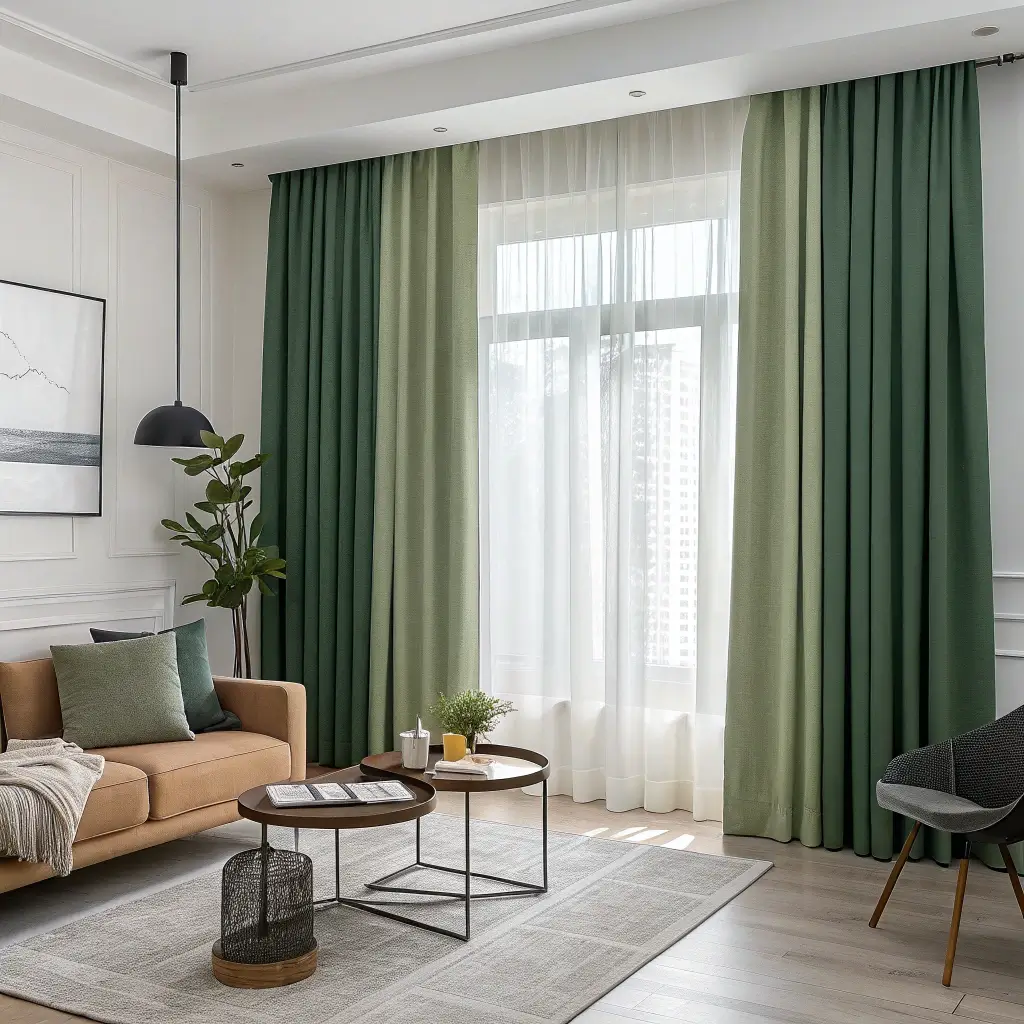 Why settle for one green when you could have two? Two-tone green curtains add sophistication and visual interest without needing additional decor. They’re basically doing all the heavy lifting for you.