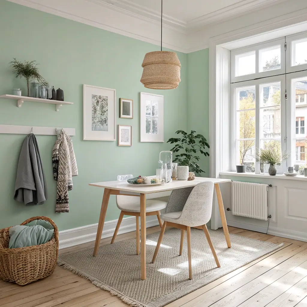 Scandinavian design meets pastel green, and suddenly your dining room feels like a breath of fresh Nordic air. This combination brings lightness and simplicity without sacrificing personality.