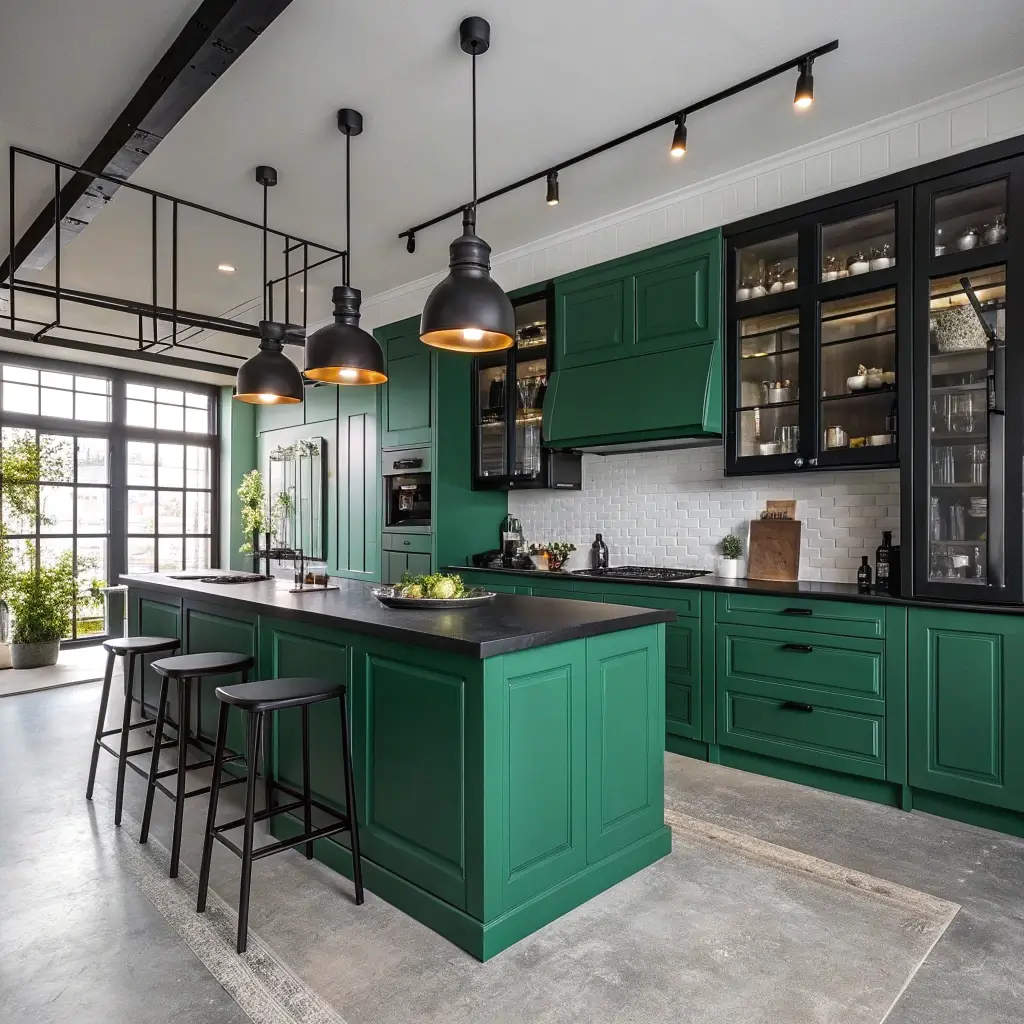 Sometimes you just want to go big or go home, right? Bold green and black contrasts create dynamic kitchens that refuse to be ignored. We’re talking kelly green, lime green, even that electric green that makes your eyes vibrate.