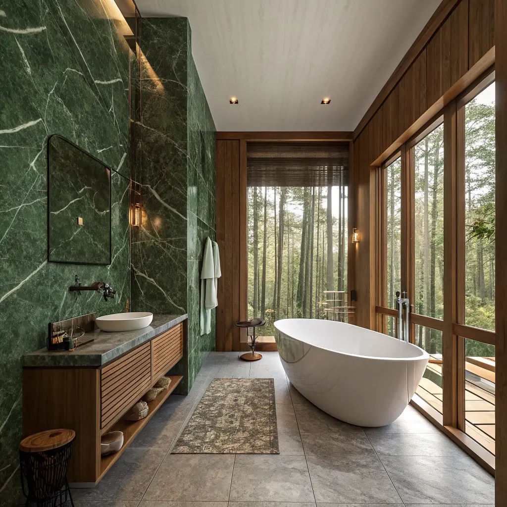 Creating a spa bathroom with forest green marble involves more than just slapping some stone on the walls. You want to build an entire experience that makes you forget you’re not actually at a high-end resort. Deep forest green marble with its rich, earthy tones sets the perfect foundation for this vibe.