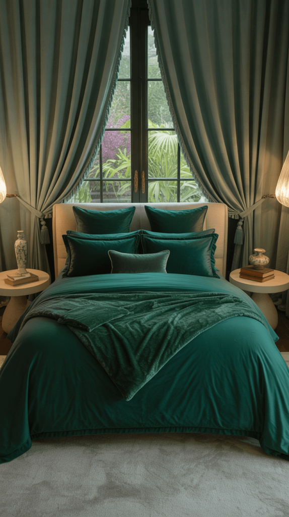 Whether you go all-out with emerald walls or just dip a toe in with some plants and a throw pillow, you’re inviting a sense of calm and style into your most personal space.