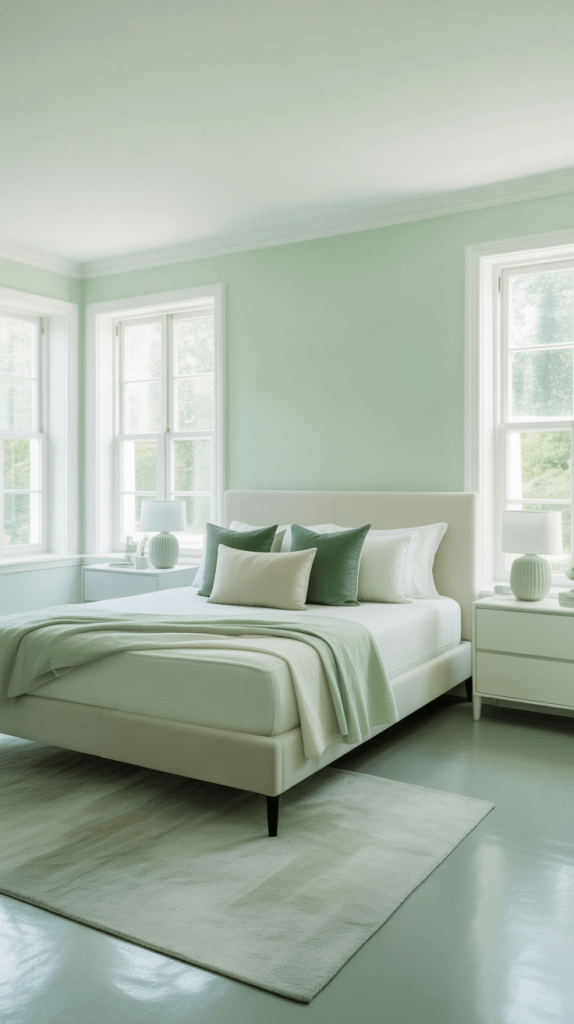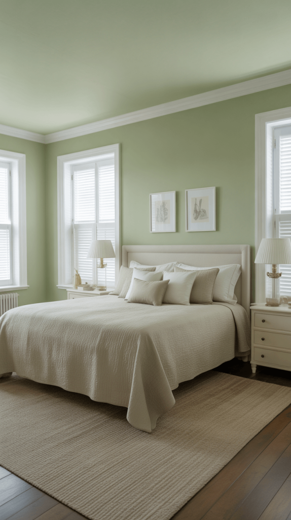 - Green walls, white trim: For a more defined look, paint your walls a soft green and use high-gloss pure white on the trim, ceiling, and doors. This classic combo is always a winner.