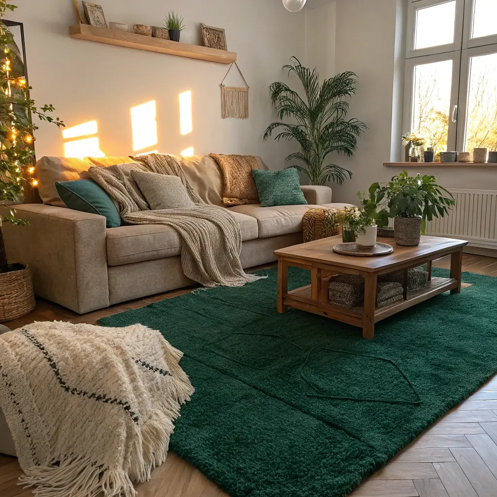 Strategies for green rugs in small living rooms: