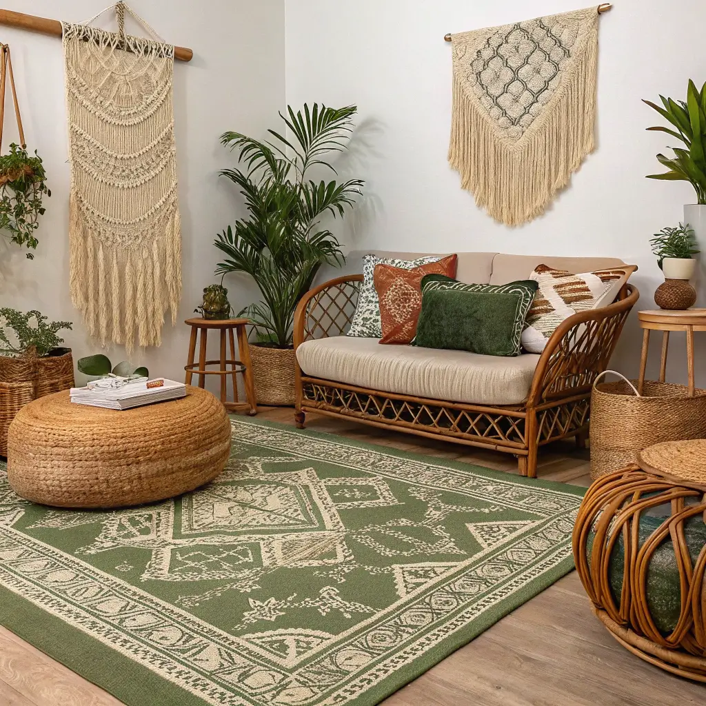 Boho Chic Living Rooms with Olive Green Rugs