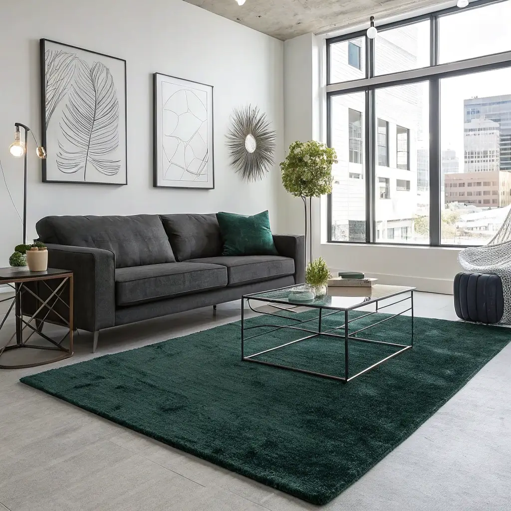 I’ve noticed dark green rugs work especially well in modern spaces with lots of natural light. They create this gorgeous contrast against white walls and sleek furniture that feels both contemporary and timeless. Plus, they hide dirt like nobody’s business (practical win!).