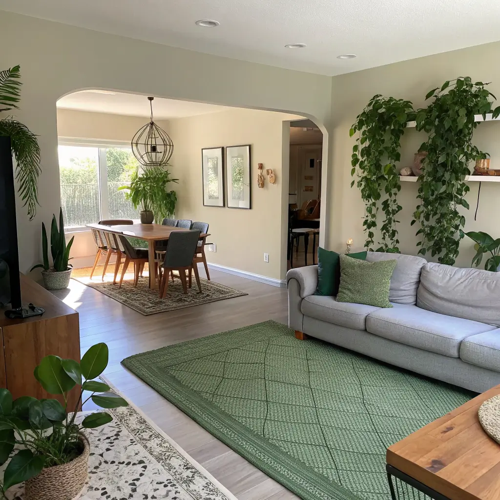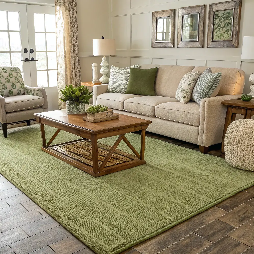 Green Rug Ideas for Open-Concept Spaces