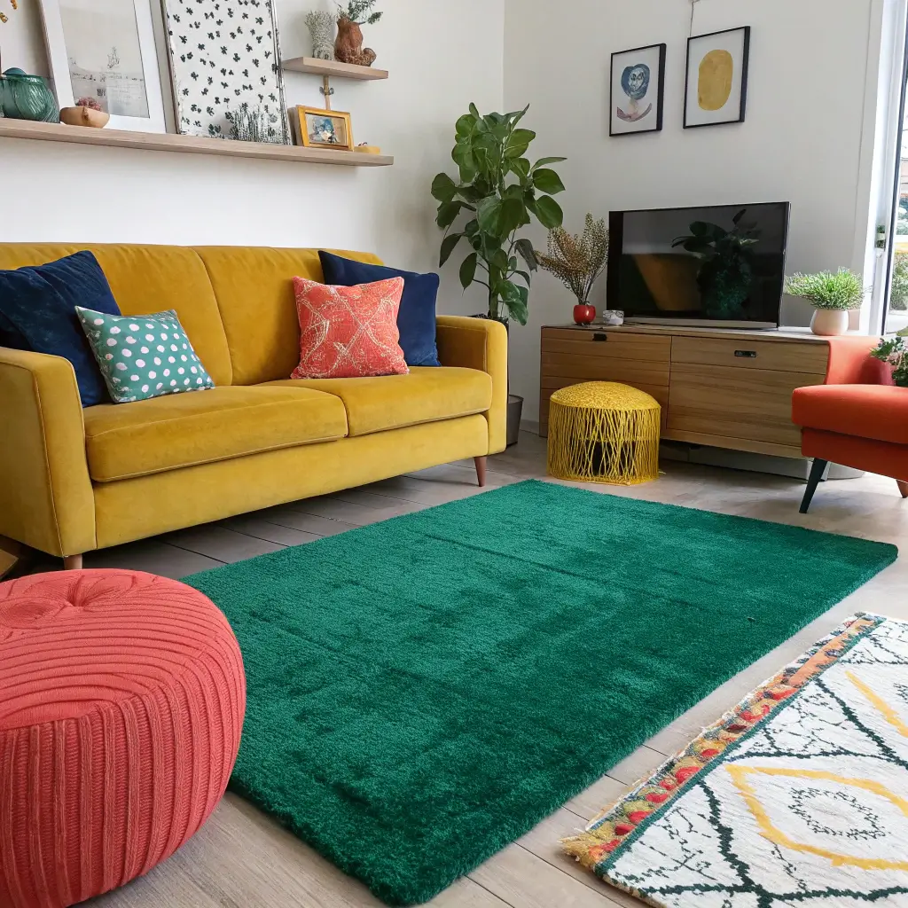 Want to try a bold combo without committing? Start with a green rug and add colorful accessories gradually. You can always dial it back if it feels like too much.