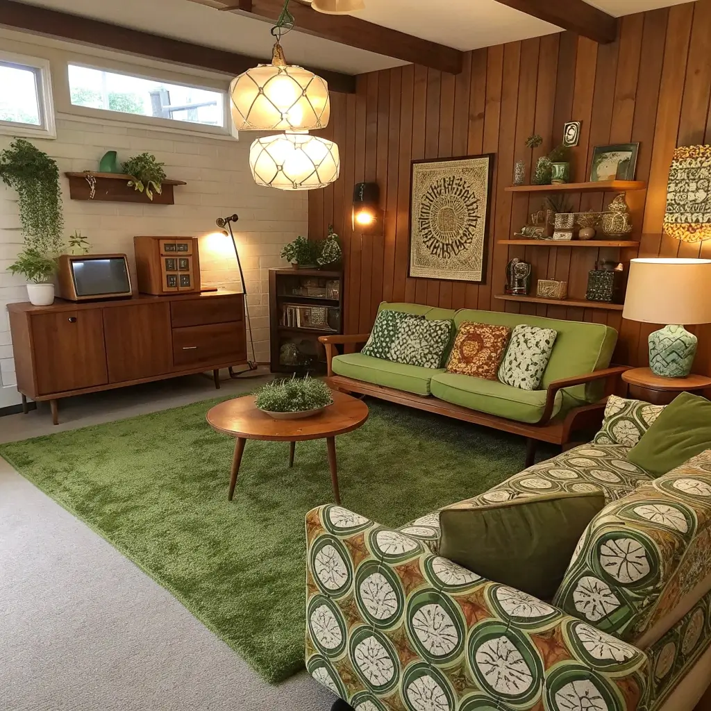 Vintage-Inspired Living Rooms with Green Rugs