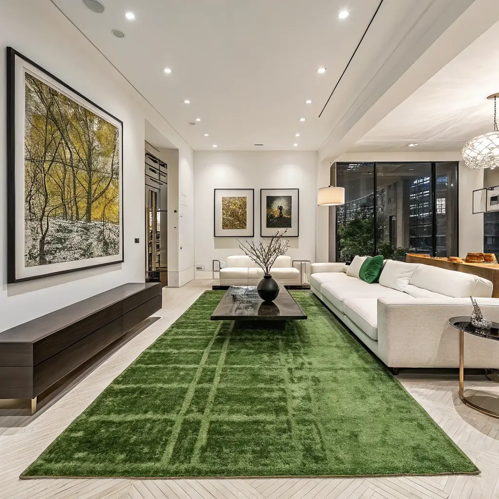Remember, in open concepts, your green rug needs to play well with everything else visible from that spot. Think of it as the peacekeeping diplomat of your design scheme.
