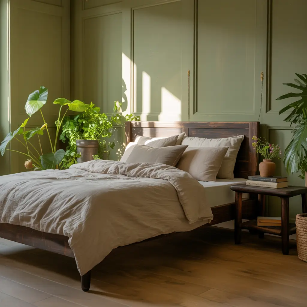I’ve found this combo works especially well in bedrooms that need to feel calm and restorative. The earthiness grounds you, while the green keeps things fresh and alive. It’s basically the design equivalent of a deep breath.