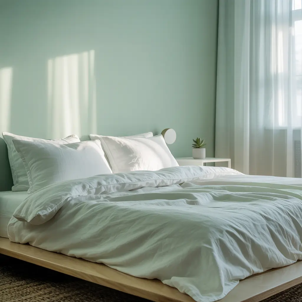 The secret to adult mint green? Keep everything else super clean and simple. White bedding acts like a visual palate cleanser that prevents the mint from feeling too sweet or juvenile.