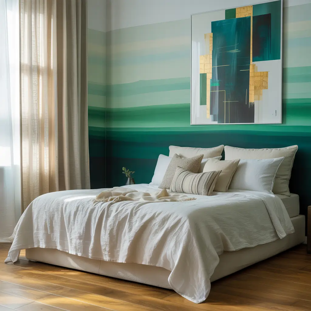 Who says you have to pick just one shade of green? Ombre walls let you have your cake and eat it too. Start dark at the bottom, fade to light at the top, and suddenly your bedroom has this artistic gradient that looks like it belongs in a design magazine.