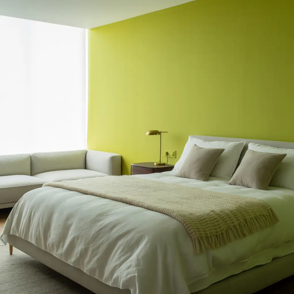 The trick with lime green is treating it like a really loud friend – you love them, but you need balance. One wall only, and keep everything else neutral or you’ll feel like you’re sleeping inside a tennis ball.