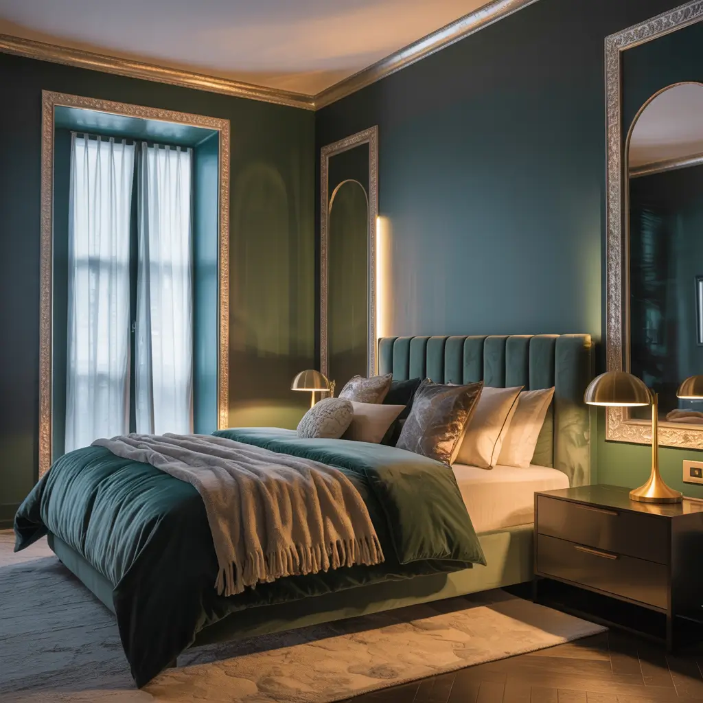 Let’s kick things off with the showstopper: emerald green paired with gold accents. This combo screams luxury without the luxury price tag. You know that feeling when you walk into a high-end hotel room? That’s exactly what emerald and gold deliver to your bedroom.