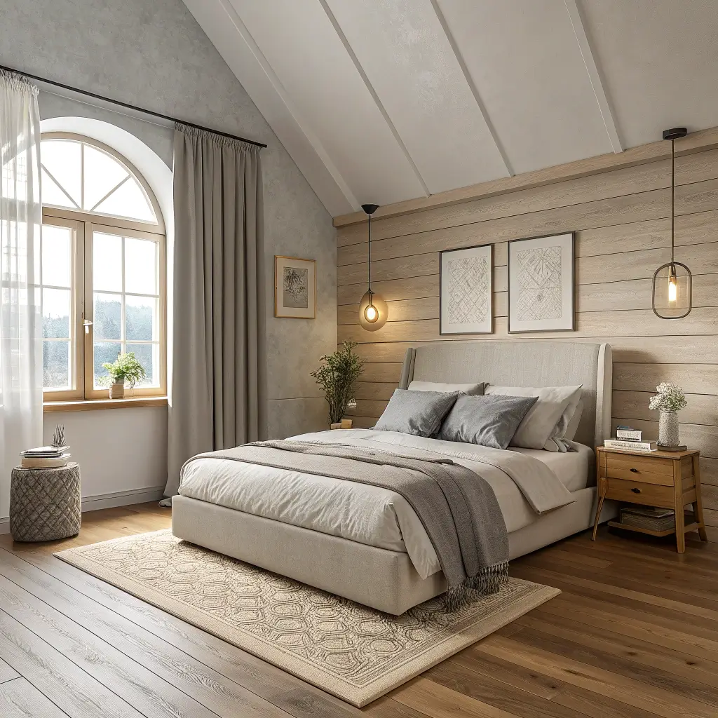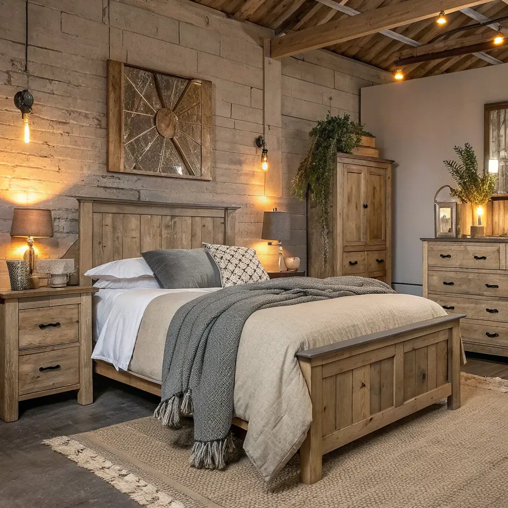 The trick with rustic style is balancing rough with refined. Pair that distressed wood nightstand with crisp beige linens. Mix industrial metal lighting with soft grey curtains. It’s all about controlled contrast.