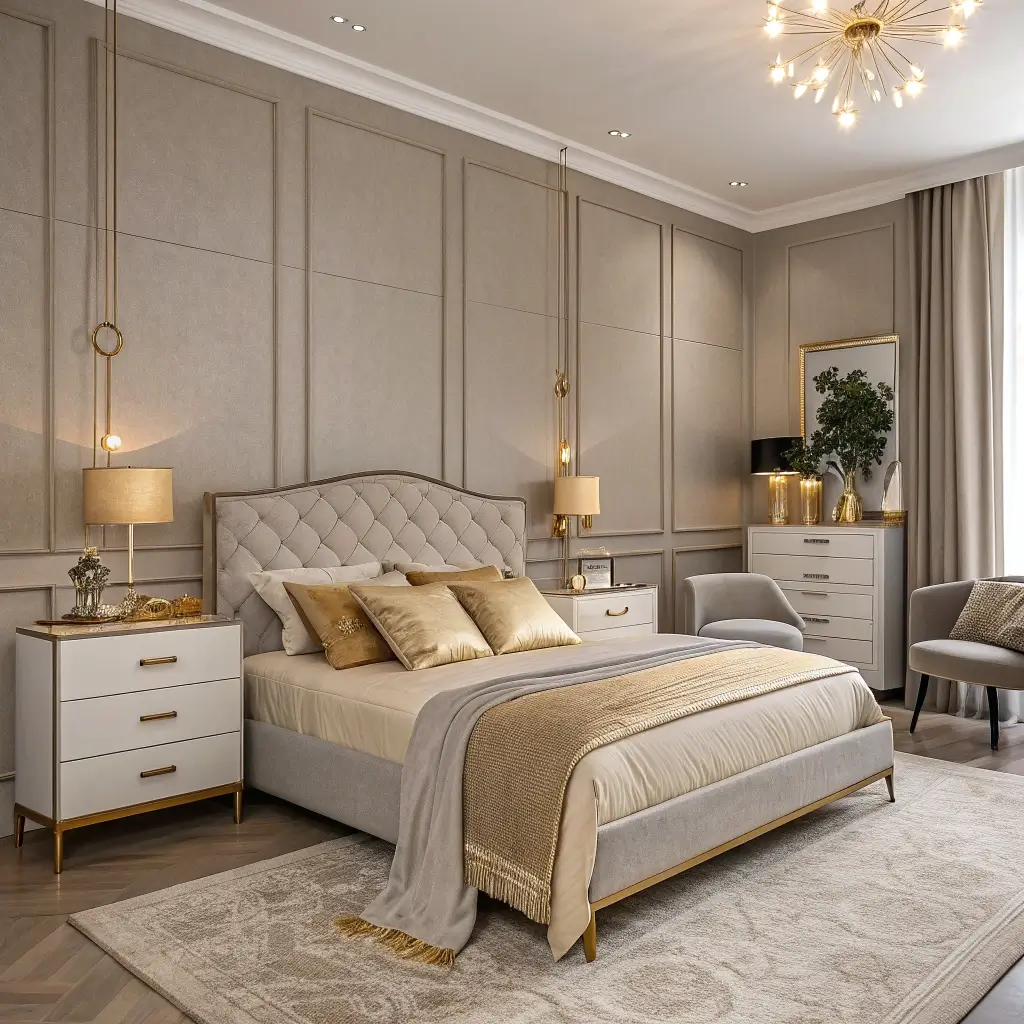 Okay, this one’s for those who think grey and beige equals boring. Adding gold accents transforms the whole vibe from “nice” to “notice me.” I helped my cousin design her room this way, and now everyone thinks she hired a professional designer (she didn’t, but I’ll take the compliment).