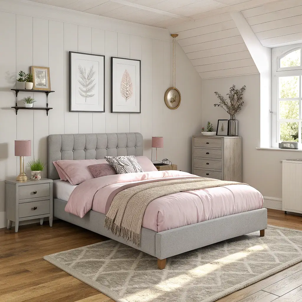 The secret sauce lies in mixing warm and cool undertones. Choose greys with slight brown hints rather than stark, cold ones. Your blush pink should lean peachy rather than bubblegum – trust me on this one. Add some fairy lights strung along the headboard, and you’ve basically created the ultimate Sunday morning sanctuary.