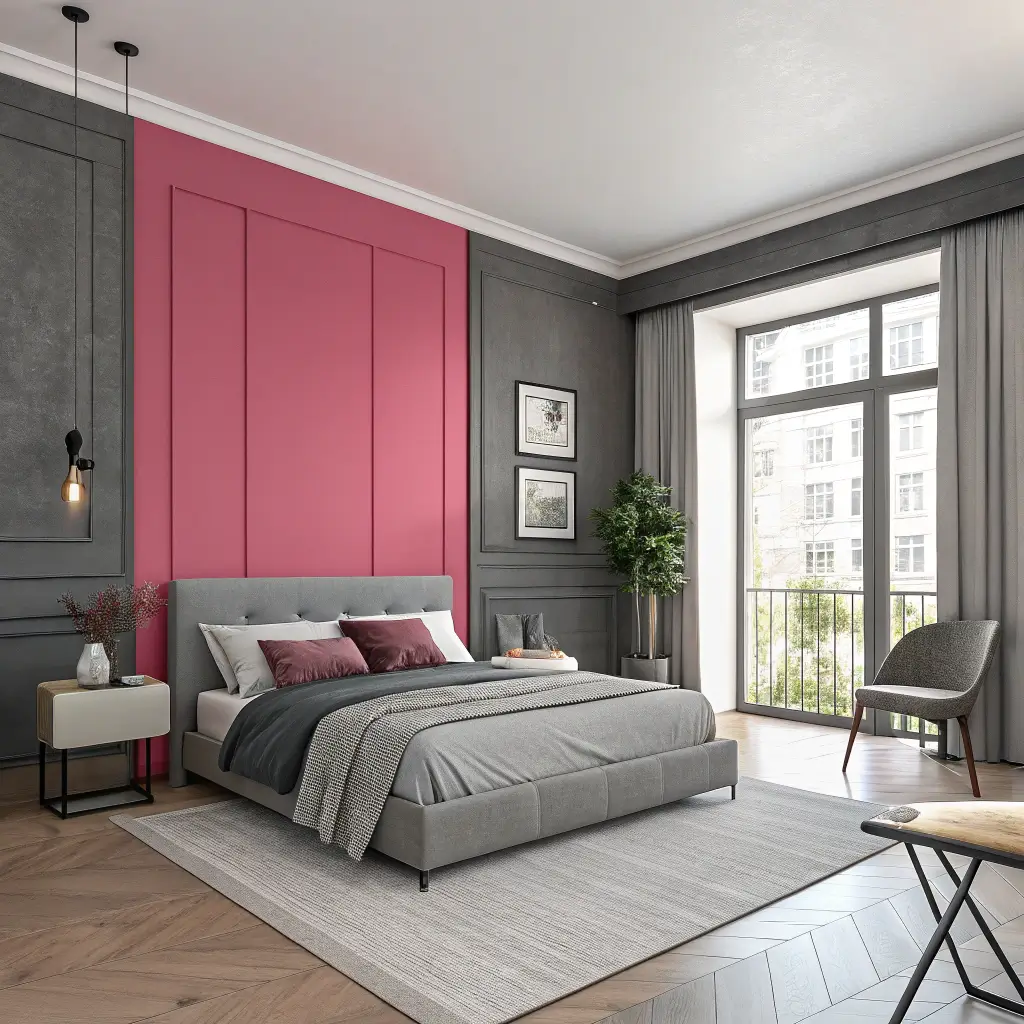 Grey Bedroom with Pink Statement Wall