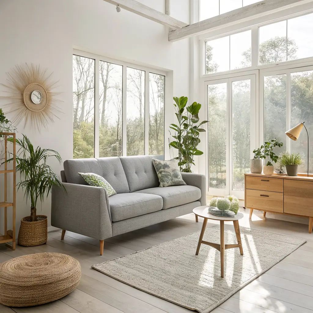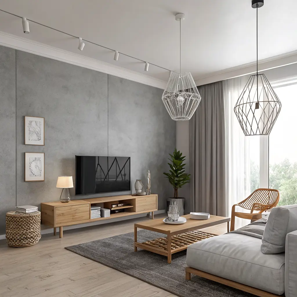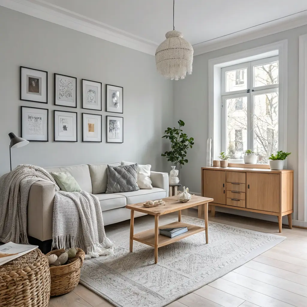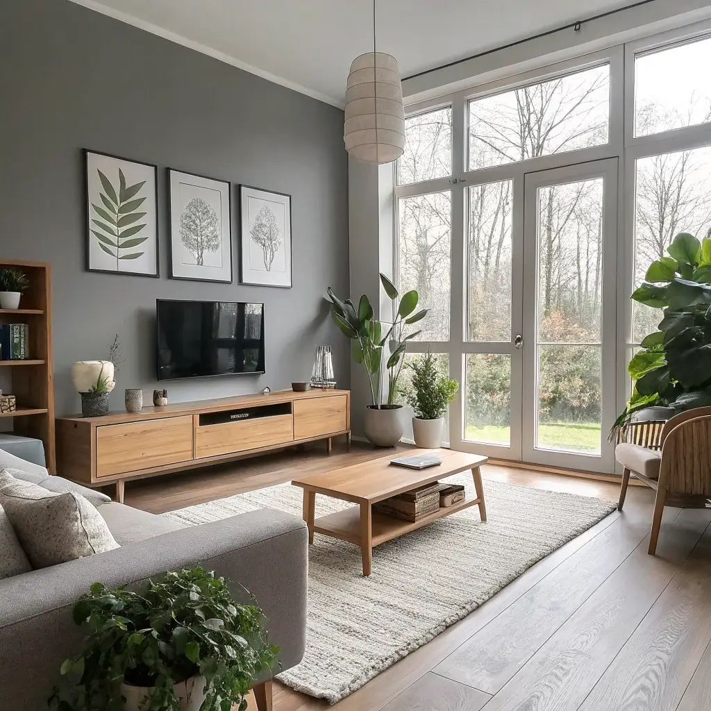 Scandinavian Grey and Wood Living Room Decor