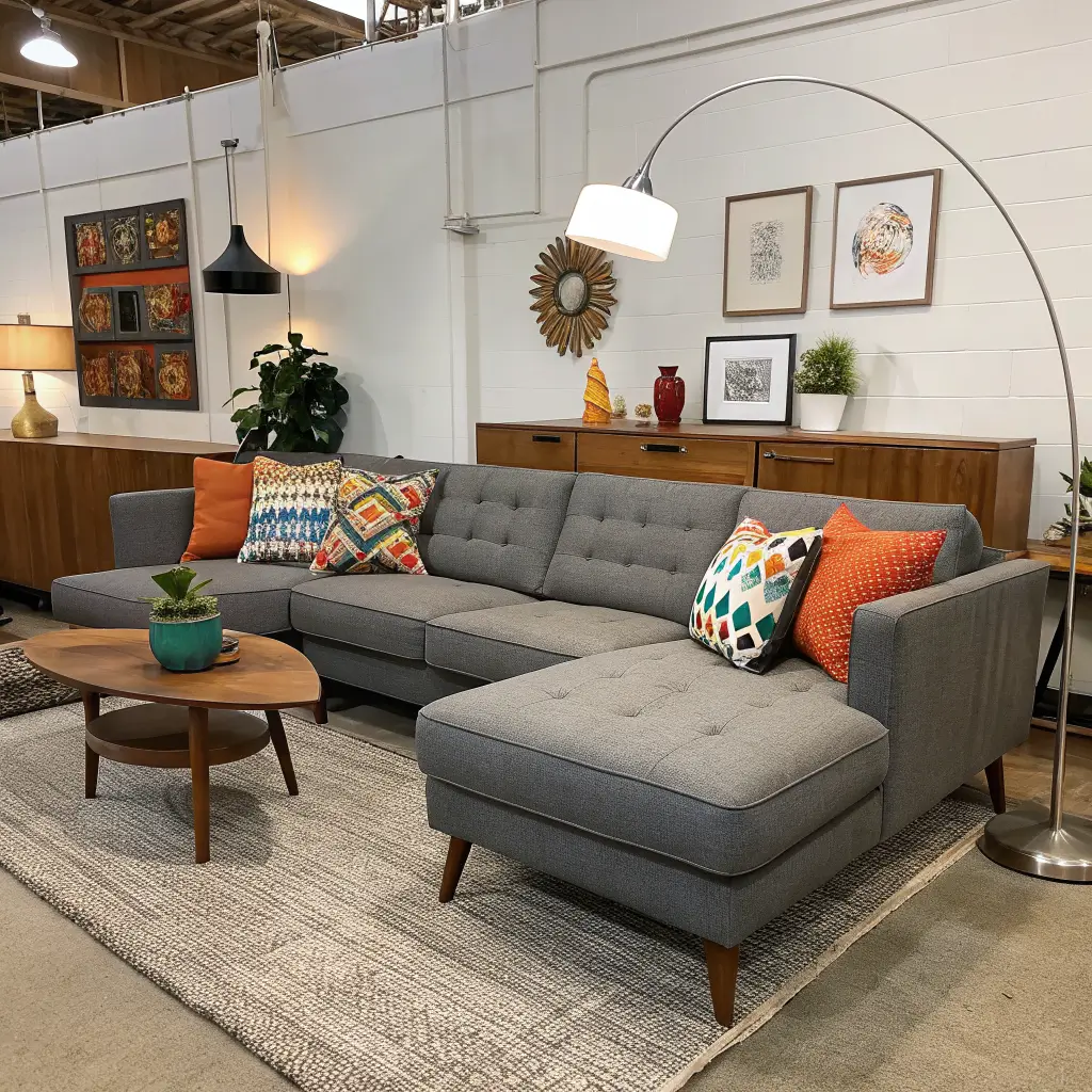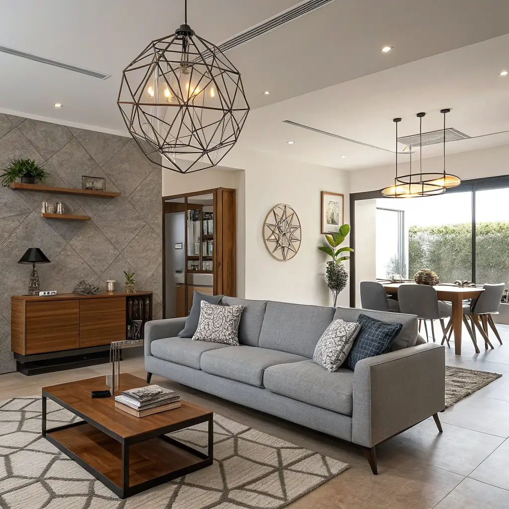 Currently trending? The floating furniture arrangement. Instead of lining everything against walls, float your grey sofa in the middle of the room with a slim wood console table behind it. This creates distinct zones even in tiny spaces.