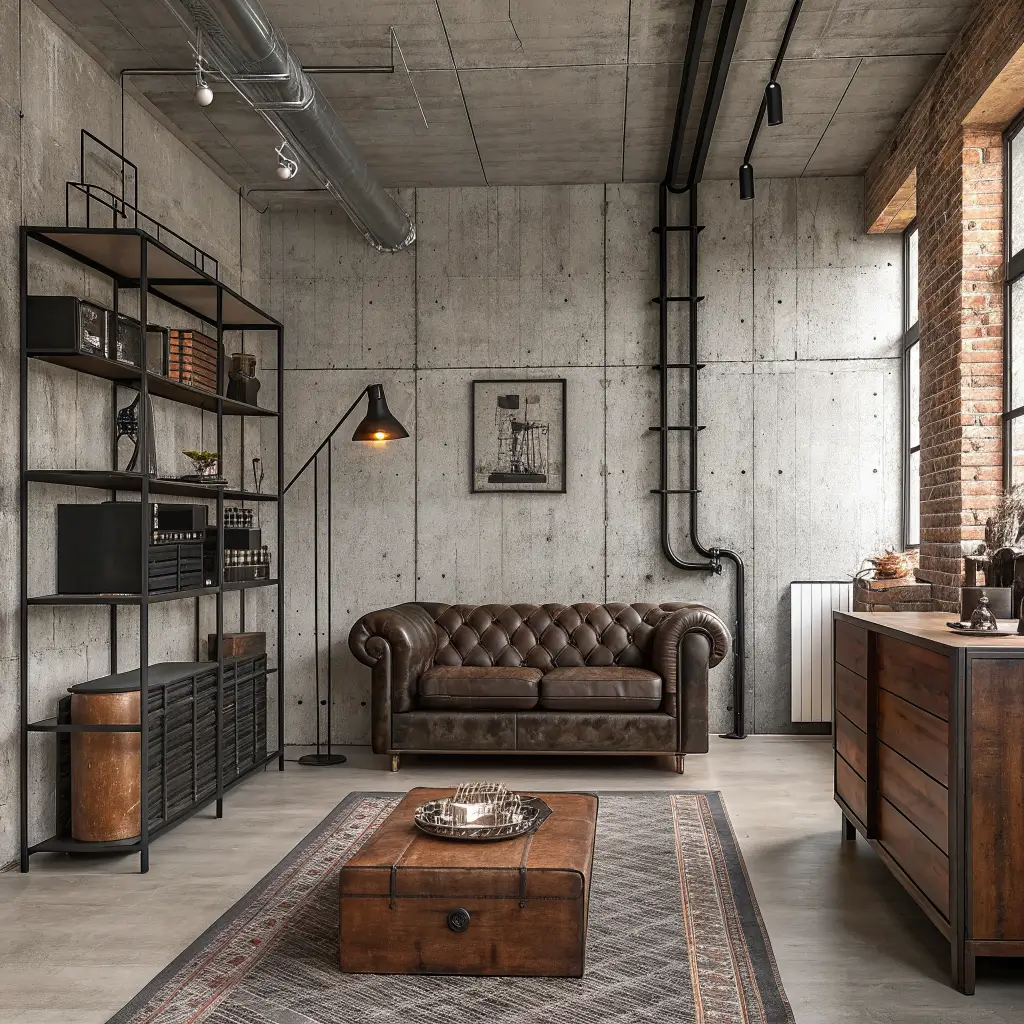 The industrial look gives you permission to leave things unfinished. That grey concrete wall? Feature, not flaw. Embrace the rawness – it adds character without adding clutter.