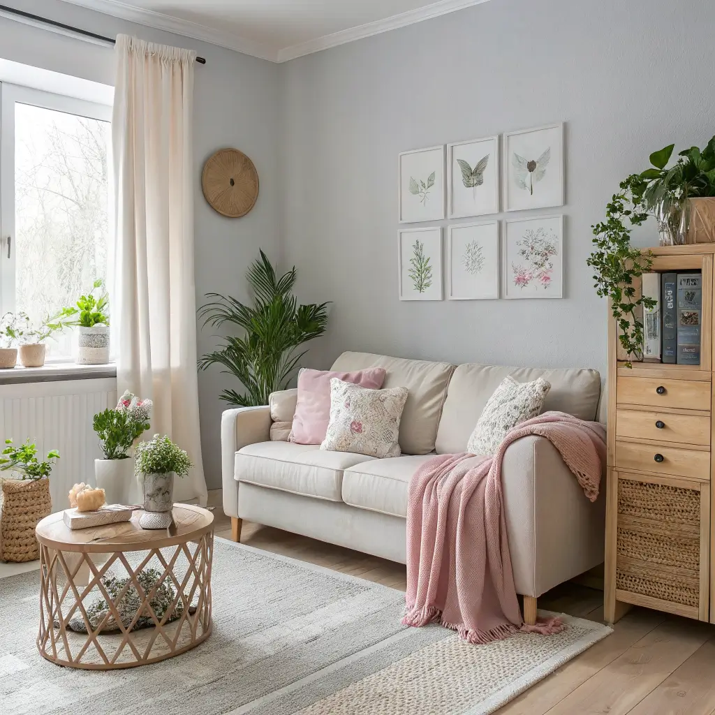 Layer different soft greys throughout the space. Pale grey walls, a slightly darker grey sofa, silver-grey curtains – this tonal approach creates depth without harsh contrasts. Add plush textures like velvet, cashmere throws, and thick pile rugs. Your living room should feel like a expensive hotel suite, minus the minibar prices.
