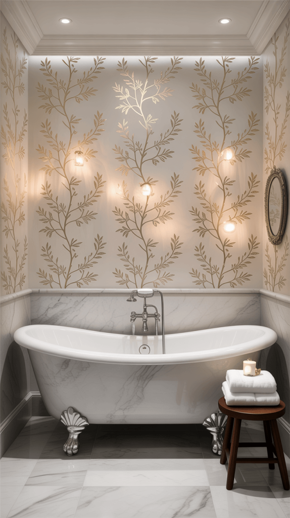 These wallpapers work especially well in bathrooms with dim lighting, as the metallic shine can reflect light and make the room feel more open and inviting.