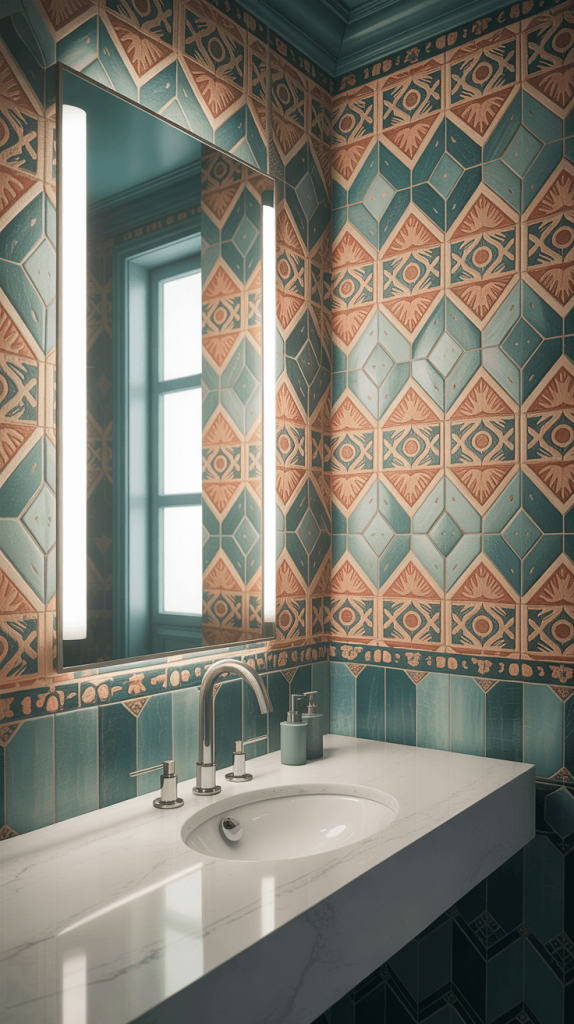 Combine this with sleek, modern bathroom fixtures to create a striking contrast that feels both vibrant and timeless.