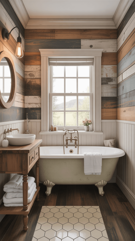 9. Wood-Look Wallpaper for a Rustic Charm