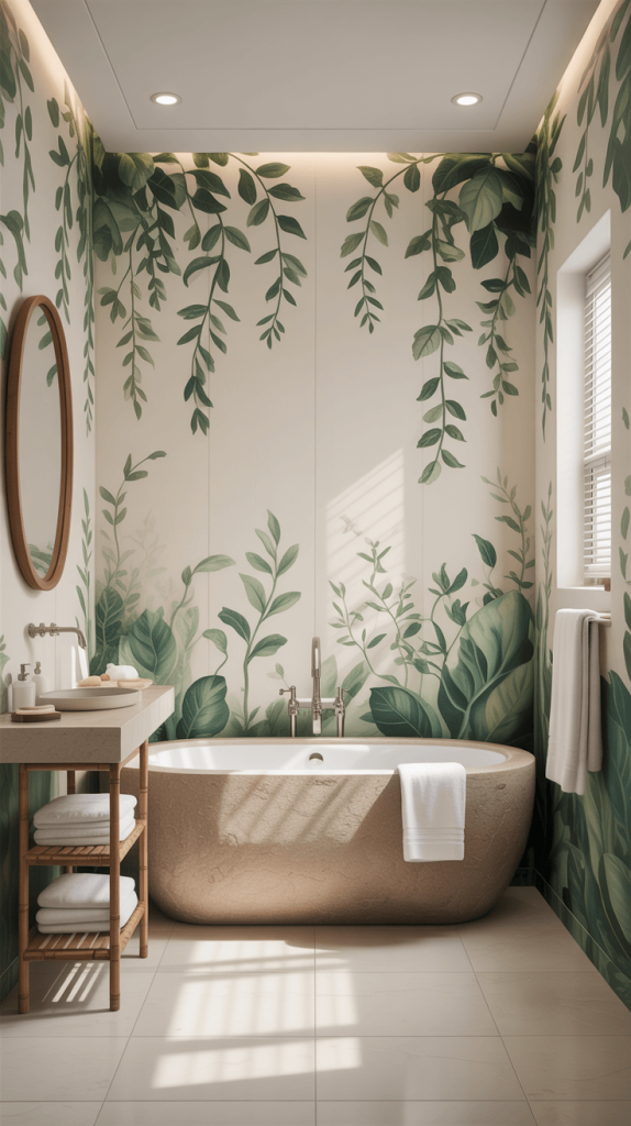 These designs can create a calming environment, making it a perfect retreat for guests to relax. Opt for moisture-resistant materials like vinyl to ensure longevity in a bathroom setting.
