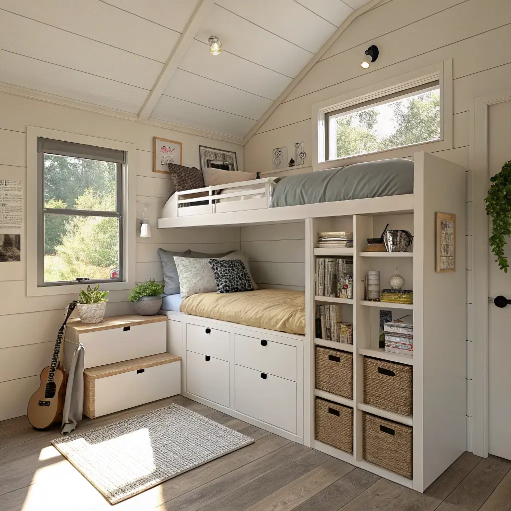 Loft beds aren’t just for dorms anymore. Modern versions look sophisticated and free up valuable floor space underneath for seating or storage. If ceiling height is limited, consider a captain’s bed with built-in drawers – it’s like getting a dresser for free.