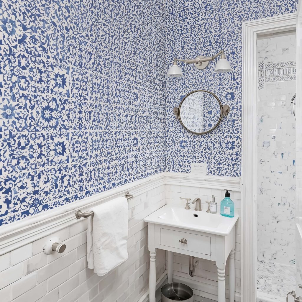 I used a blue and white Moroccan print in my rental property, and it photographs so well that it’s basically become my property’s Instagram star. Marketing win!