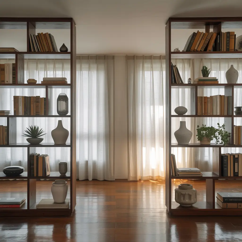 The key to making bookshelf dividers look intentional rather than just “randomly placed furniture” is strategic styling. I follow the 60-40 rule: 60% books and functional items, 40% decorative objects and plants. This keeps it from looking too cluttered or too sparse.